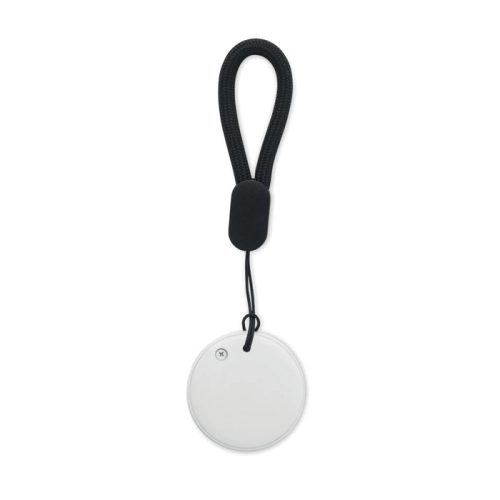 Smart Apple Find My / Google Find Hub locator device with strap and IPX5 waterproof rating.